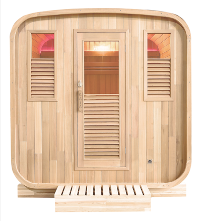 Le sauna d'extérieur Gaïa Nova incarne tous les éléments d'une cabine haut de gamme, offrant un espace confortable grâce à sa structure carrée. Ses dimensions idéales (200x180x197cm) permettent d'accueillir jusqu'à 6 personnes. Équipé d'une porte vitrée et de fenêtres de chaque côté, ce sauna offre une expérience immersive, permettant de profiter de la vue extérieure tout en bénéficiant des bienfaits d'une séance de sauna à vapeur.