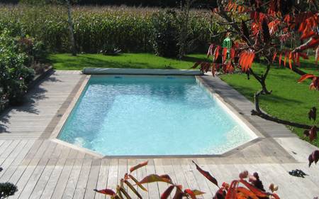 Piscine Coque Polyester à Fond Incliné avec Réservation Volet Hors-Sol modèle Péridot
