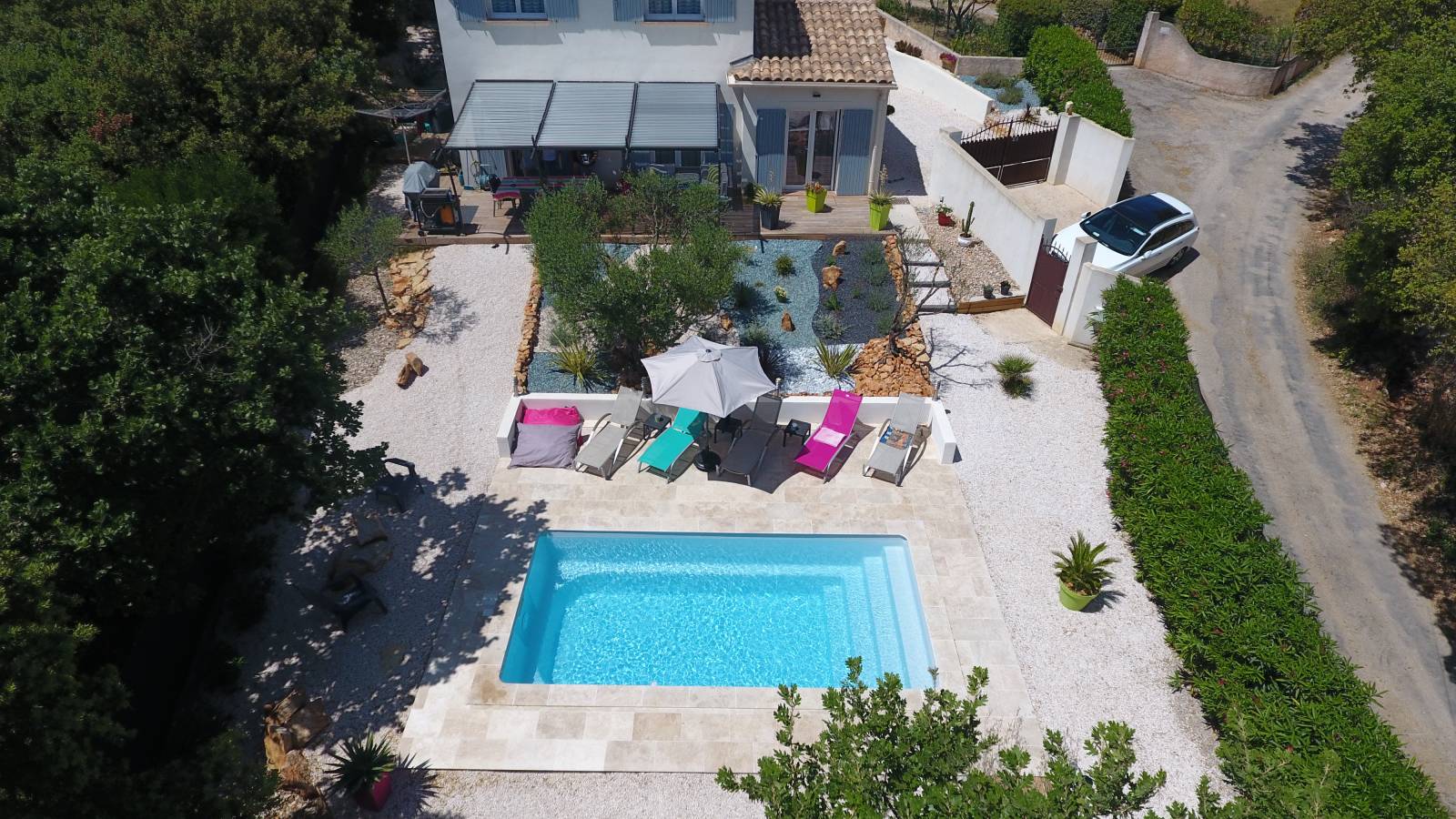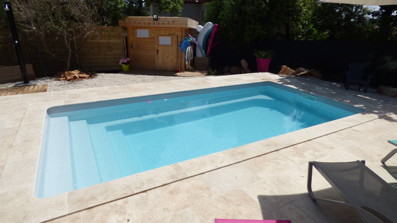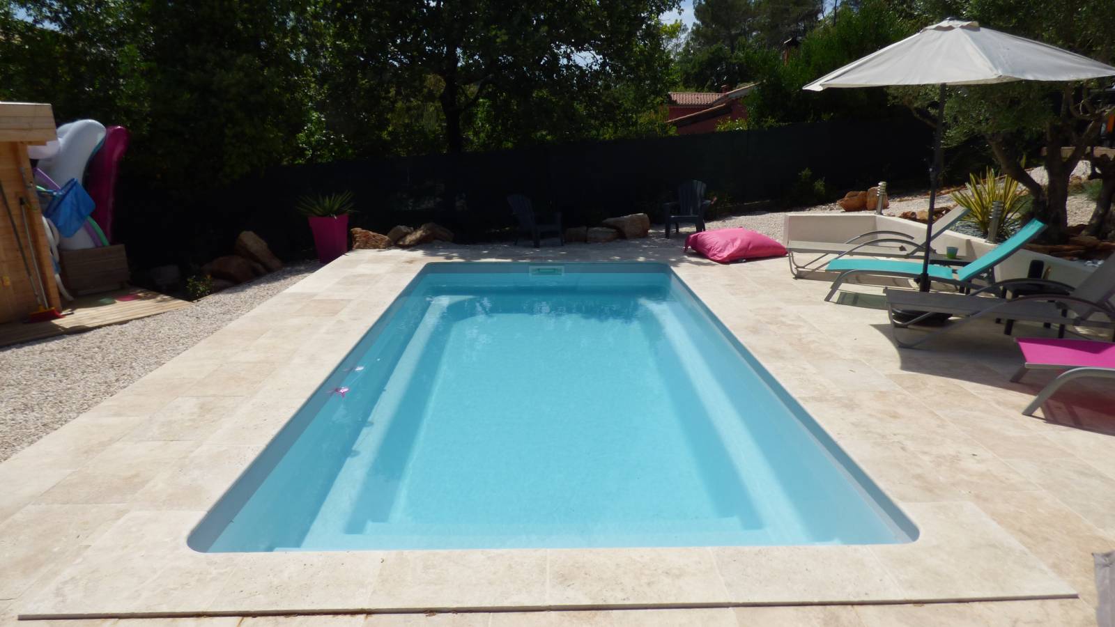 Que vous optiez pour la nage, les plongeons ou les jeux aquatiques, cette piscine creusée avec une profondeur constante garantit des moments de bonheur et de convivialité, offrant ainsi des journées estivales empreintes de plaisir et de bonne humeur.