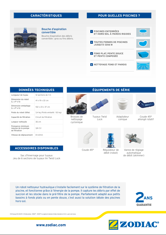 La méthode de brossage cyclonique technologique facilite le détachement des saletés incrustées avant leur aspiration. Grâce aux brosses actives du robot, il est ainsi possible d'éliminer efficacement tous types de débris, même les algues persistantes qui adhèrent au fond et aux parois de votre bassin.