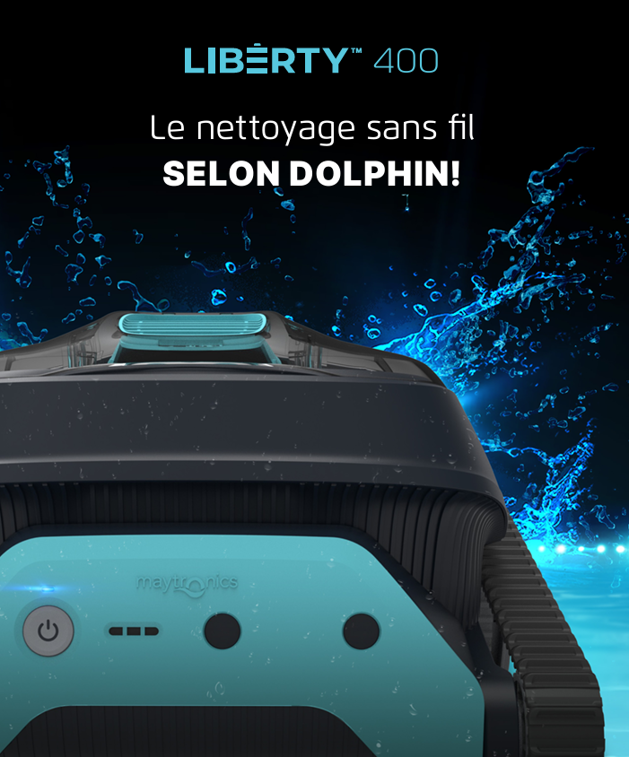 Découvrez le Dolphin LIBERTY 400, le modèle le plus avancé de la gamme sans fil Dolphin LIBERTY. Il assure un nettoyage complet de votre piscine en prenant en charge le fond, les parois et la ligne d'eau. Tout comme les autres robots de la gamme, le LIBERTY 400 est équipé d'une connexion magnétique pour une recharge par induction facile et rapide.